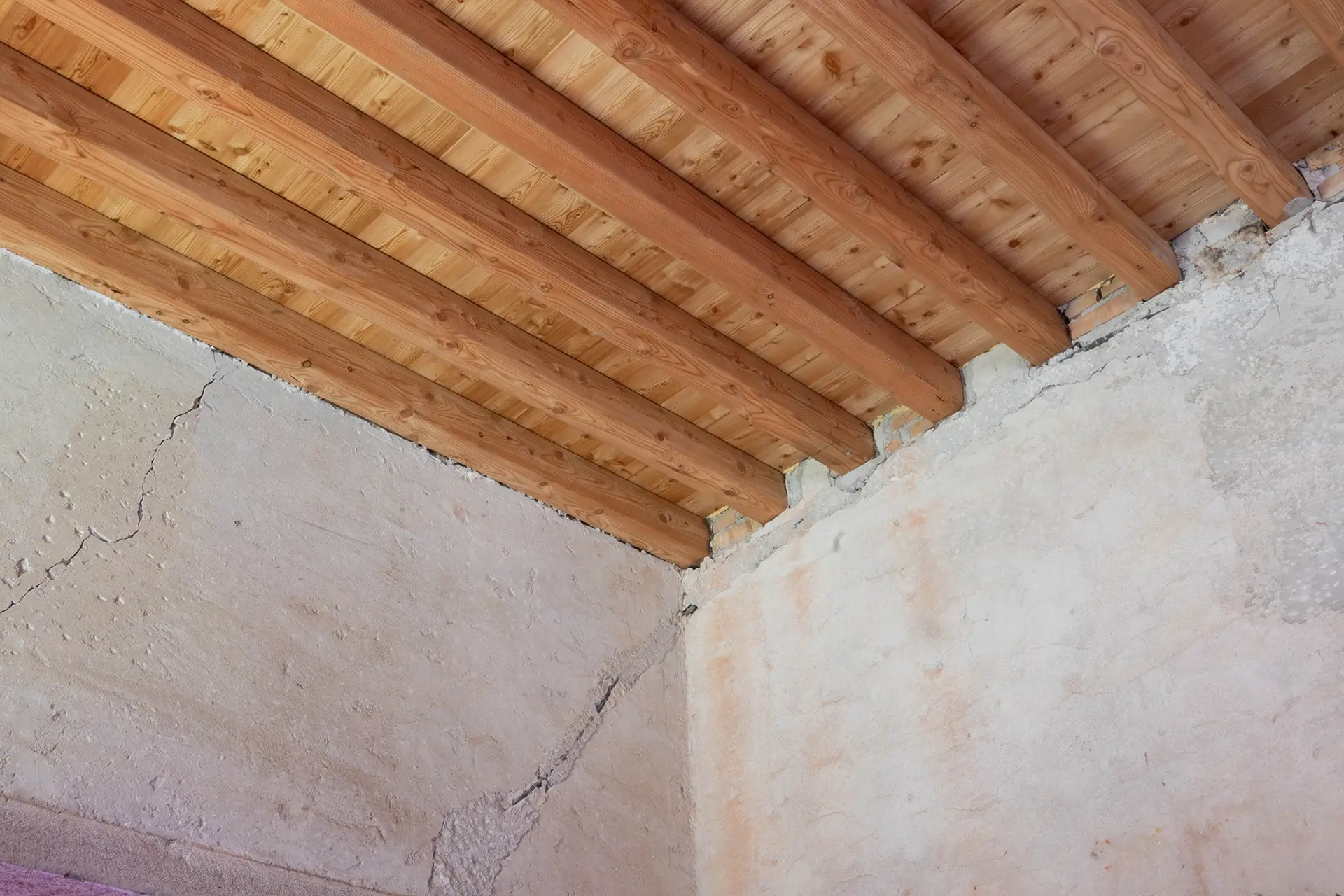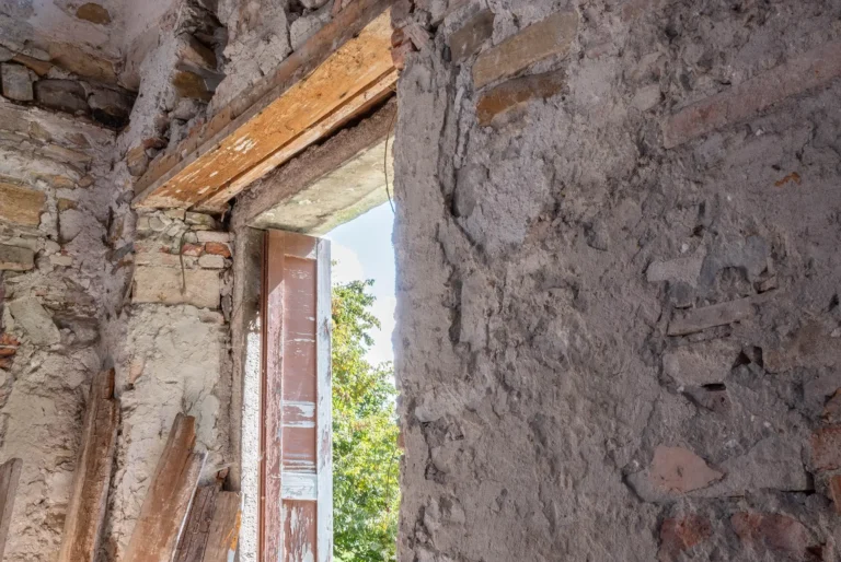 La condizione in cui oggi versa l’edificio, che ha comportato alla perdita di varie aree di intonaco e di controsoffitti, consente una lettura più chiara delle tessiture murarie, delle ammorsature, delle discontinuità murarie e della tipologia dei solai.